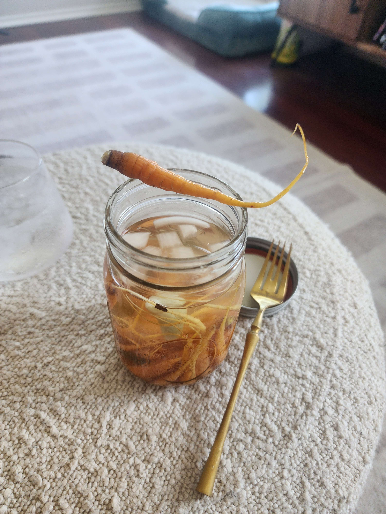 I’ve been tasting food today in a manner I never have before. It’s different. Everything is different, now. I’ve tasted the dark green of a mature spring onion. The transitional green. The white. The root. I’ve bitten them through with my teeth, and I’ve tasted them cut with my knife. I ate a tiny one I found hiding among its siblings, trying to consume it small bite by small bite and finally, gluttonously, popping the last third into my mouth to crunch down on with gusto. My favourite bite of the day was a pickled jalapeno, sized generously and rich with seeds that I expected to challenge me. It felt so rewarding, spicy and salty and vegetal and acidic, the texture giving but still firm as the best pickles are, an explosion of flavour so satisfying that I immediately stuck my fingers into the jar to fish another one out for Ken. I had to go downstairs and get a fork and come back up, and it was worth the time and the physical effort just to pluck it out and pass it to him and say, here, try this, it’s delicious.